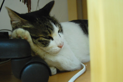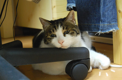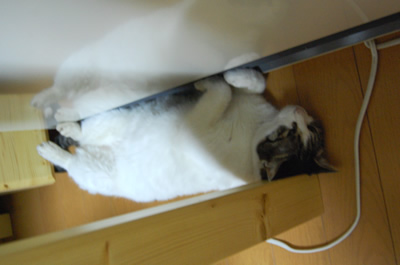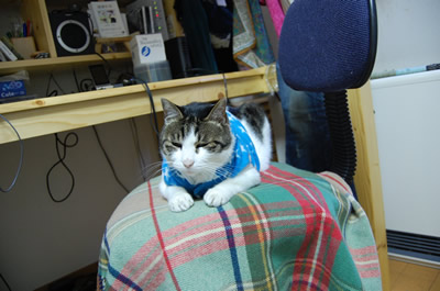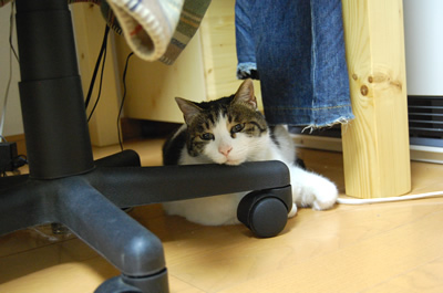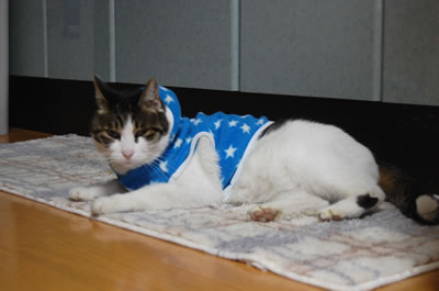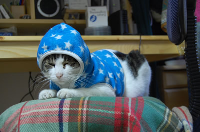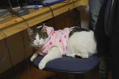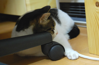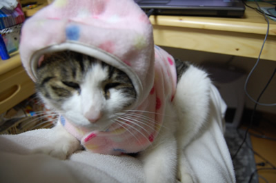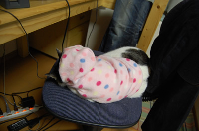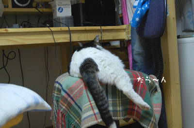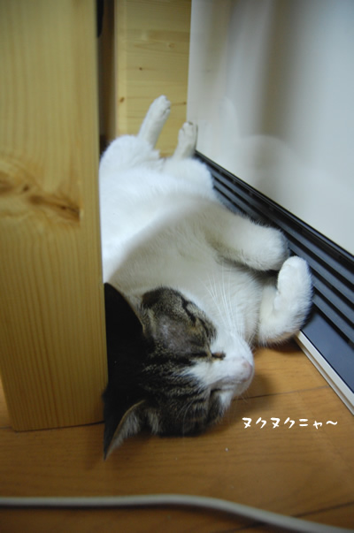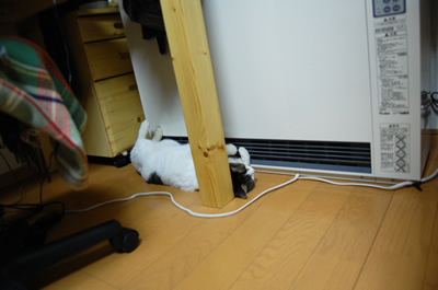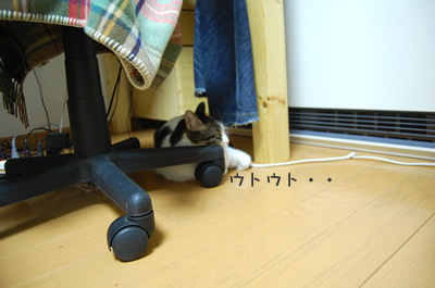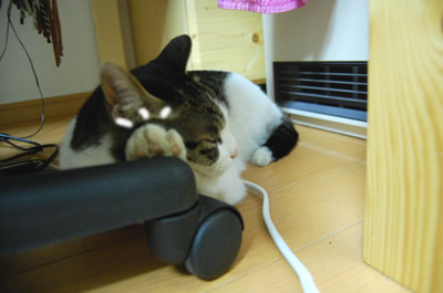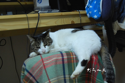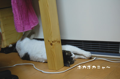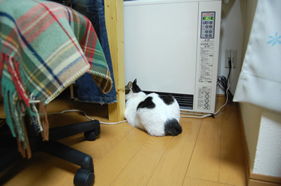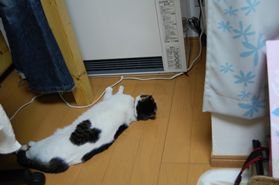 昨夜もまた寒かったようで、ストーブ前を占領していますw