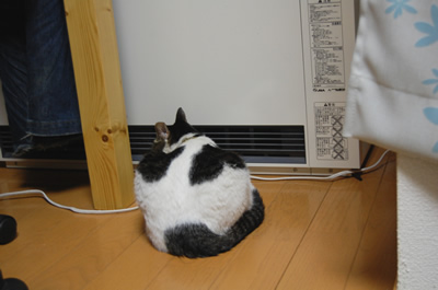 ハナミチくんがストーブのまん前に・・。