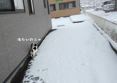 散歩に誘ってみたものの、ハナミチくんは雪の上をあるけませんw