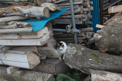 なんか材木の間に隠れていますが・・w