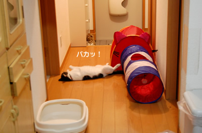 そして昨日もしつこいか~ちゃんに遊ばれてるハナミチくん。