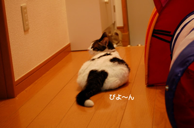 少ししてから帰ってくる音がしたのですが、いつもより音が静か・・。