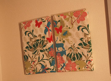 こちらマリメッコという生地を用いた、ファブリックパネルなんですが、正規品を買うと結構高い・・。