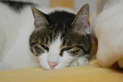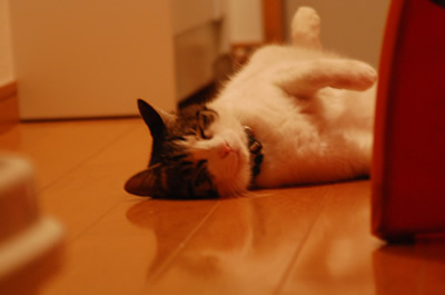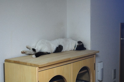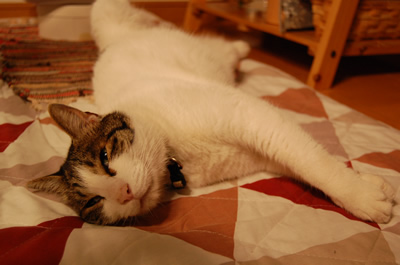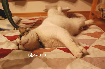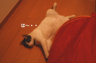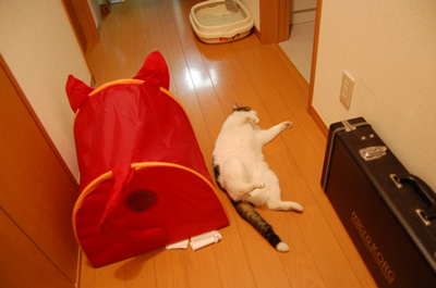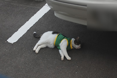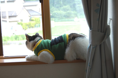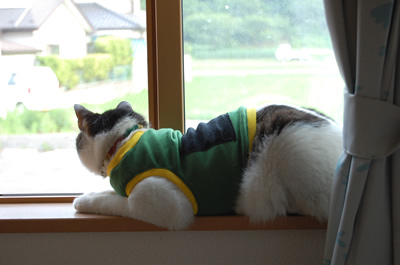 「か~ちゃんは風の出るヤツをつけてくれたけど、今度はこんなの着せられたニャ。
