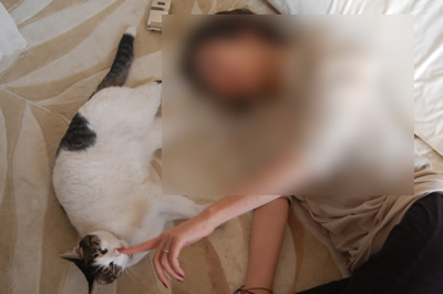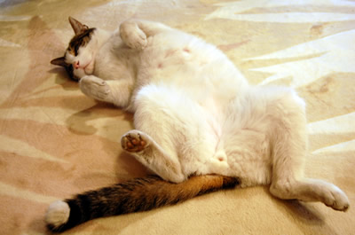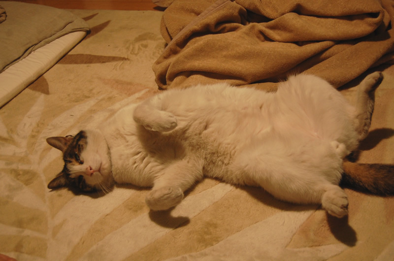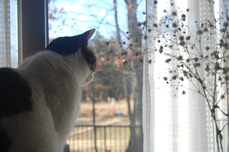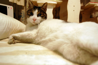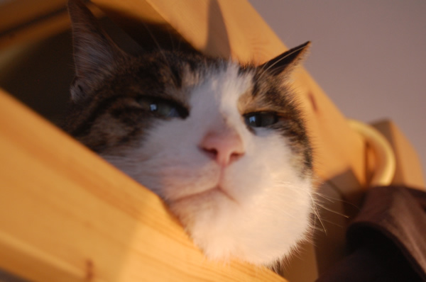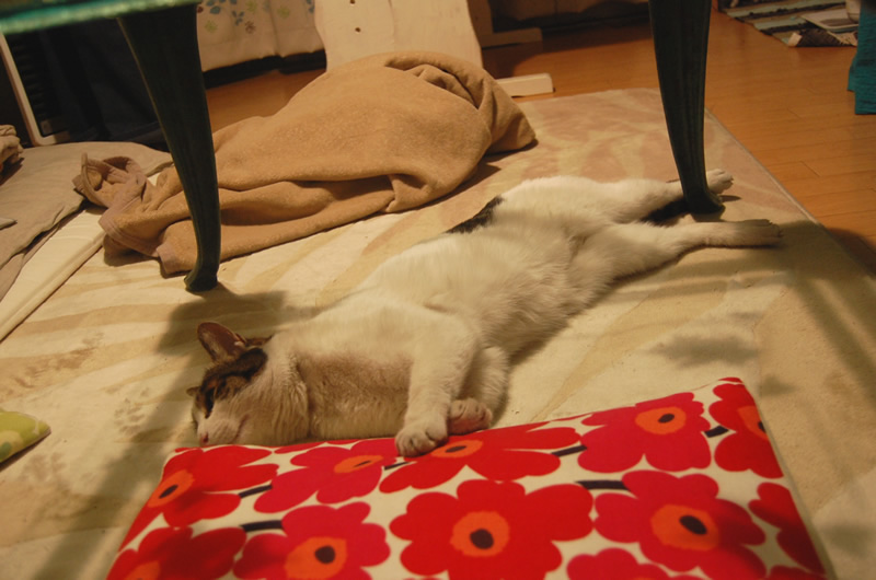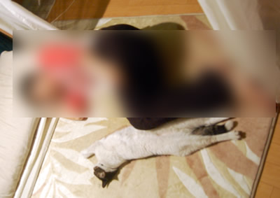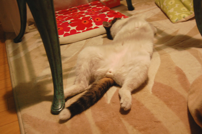「カタカタうるさいのニャ・・。か~ちゃんが家にいるとゆっくりできないのニャ・・」