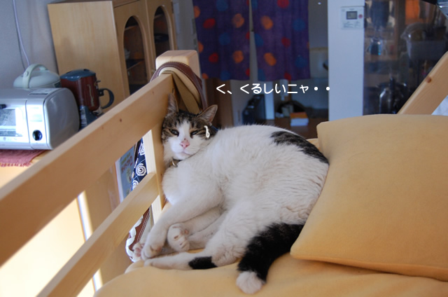 「今日は遠慮しとくニャ。大人はケンカしないものなのニャ」