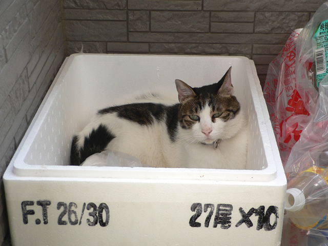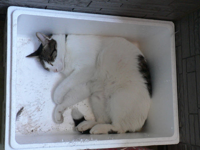 ベランダの発泡スチロールにはいって、いじけていますw