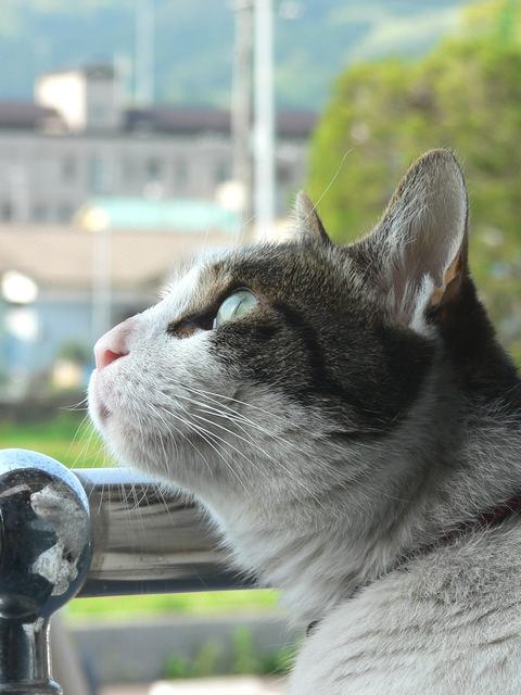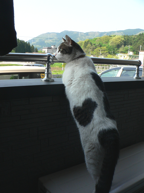 昼間はびびってクローゼットに閉じこもっていたハナミチくんも、やっと慣れてきたようで、ベランダから顔をだすようになりました♪