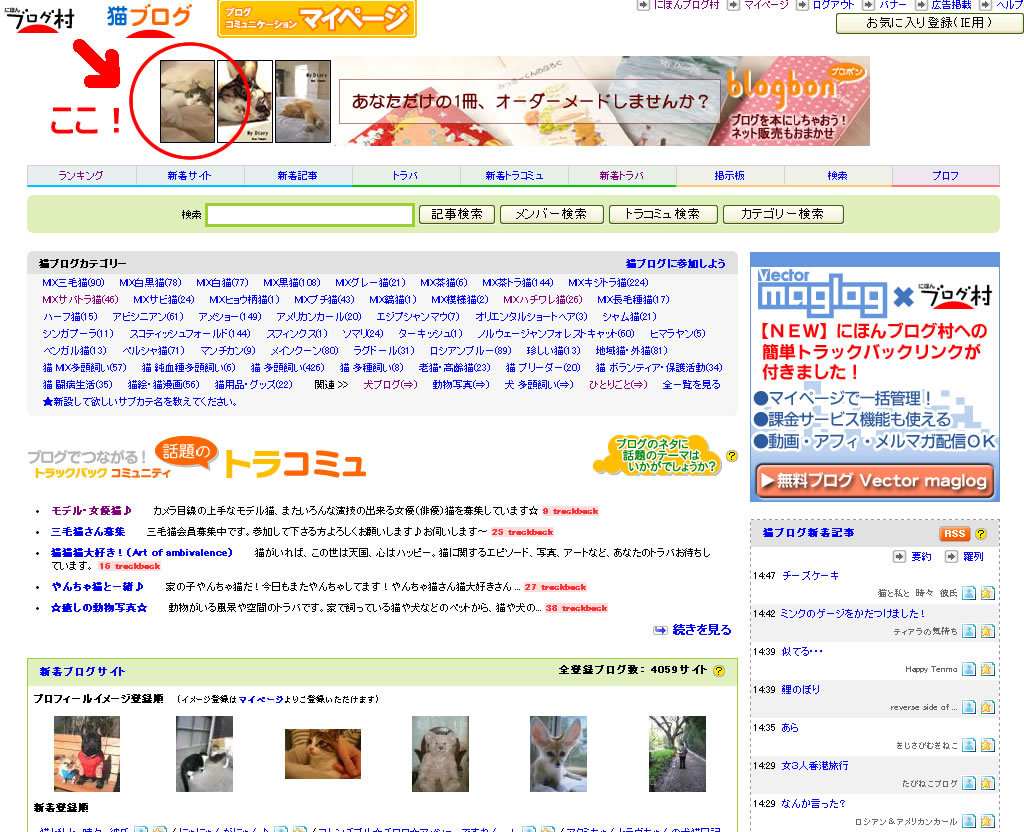 ネコカテゴリのバナーに、ハナミチ君が掲載されました!