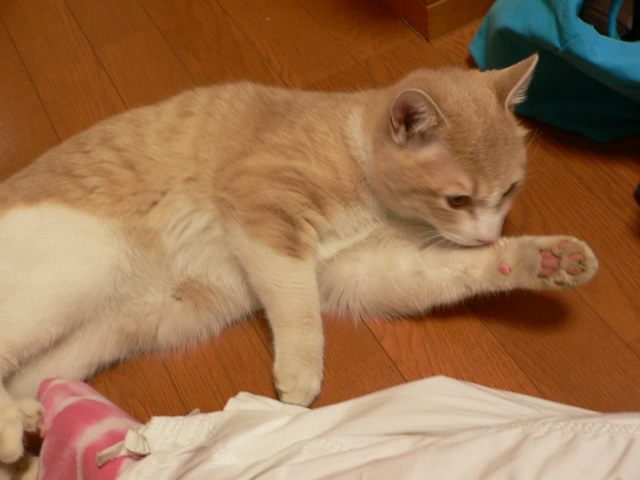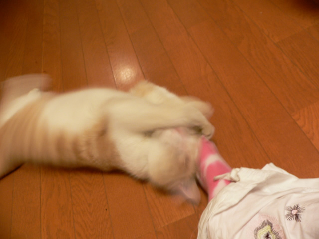 ちょっかいを出すと、一緒に指もペロペロとしてくれます。