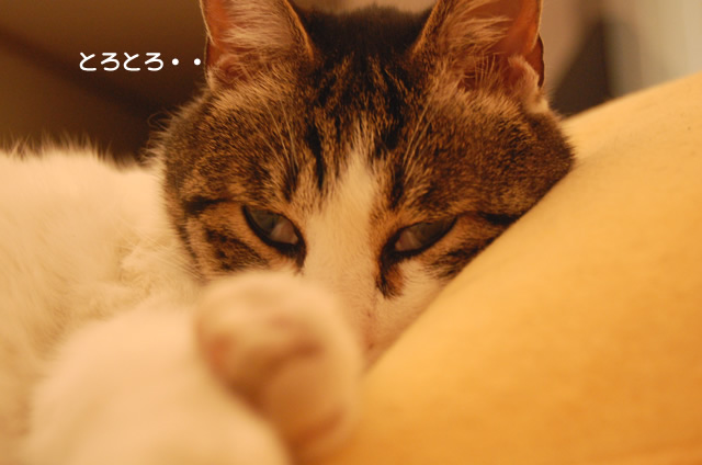 っていうか、猫が眠りに落ちるときって、こういう風に瞬膜が閉じられて、次にまぶたが落ちてくるんですね...