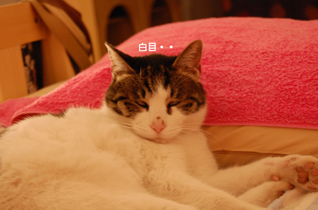 眠いところ「ほらほらっ」と目を開けさせようとしたら、白目でした・・w
