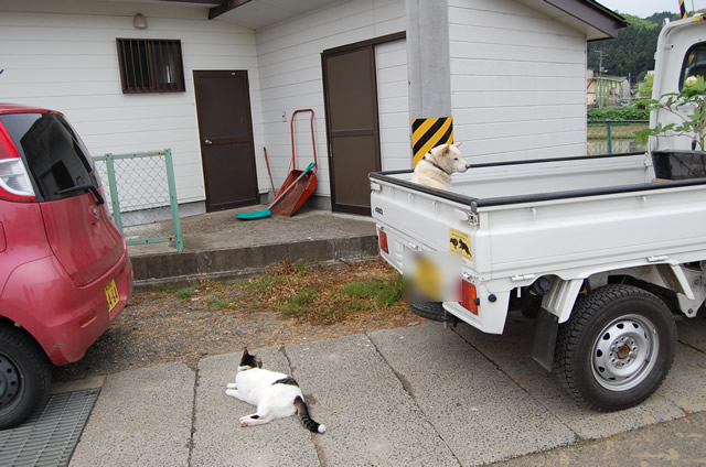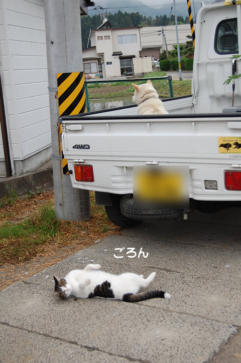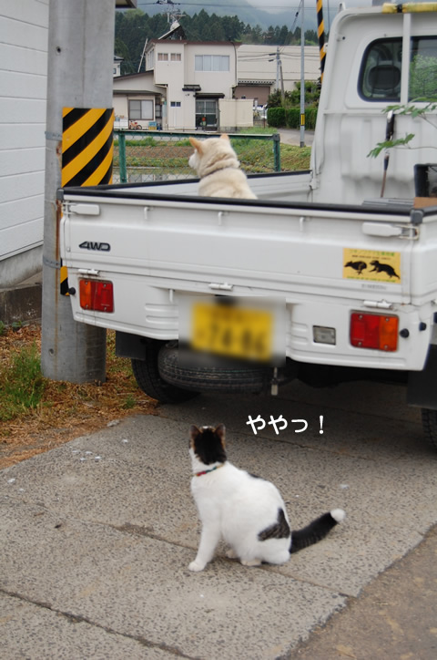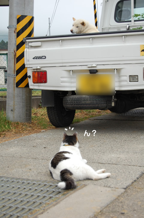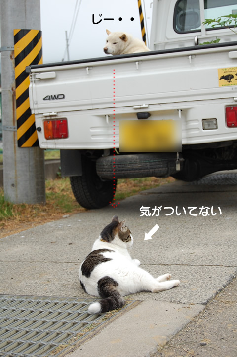 ワンはなぜか目をそらし・・w
