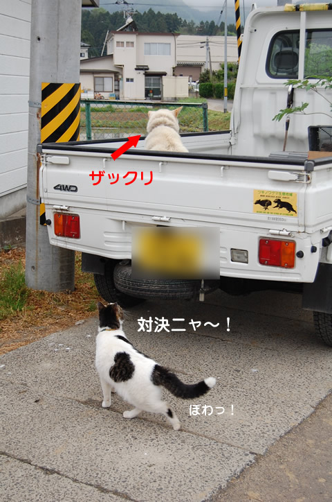 ハ、ハナミチくんたら大きなワンコにケンカ売ってる~!^^;